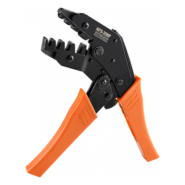 Клещи MFS-35WF предназначены для опрессовки штыревых втулочных наконечников. Трапециевидный профиль обжима. Храповой механизм, обеспечивающий блокировку обратного хода до завершения полного цикла опрессовки. Диапазон сечений втулочных наконечников 10, 16, 25, 35 мм2.